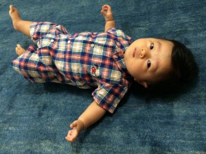 1歳1ヶ月の74cm、10.5kgの赤ちゃんに着せると、こんな感じです。