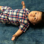 ちなみに、赤ちゃんがチェック柄ロンパースを着るとこんな感じでした。