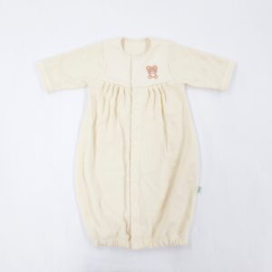 赤ちゃんがまだ足をあまり動かさない時期はドレス型 として、足を動かせるようになったらズボン型としても使えます。
